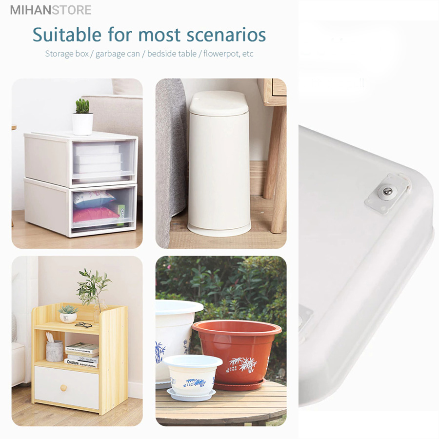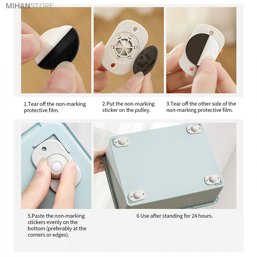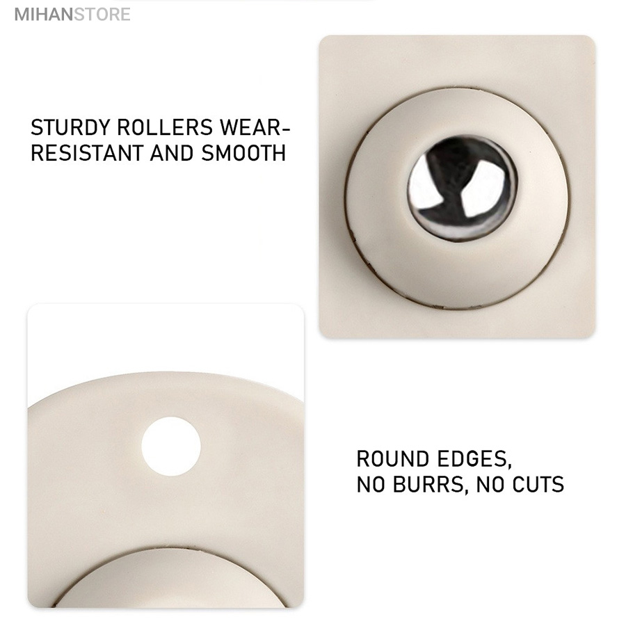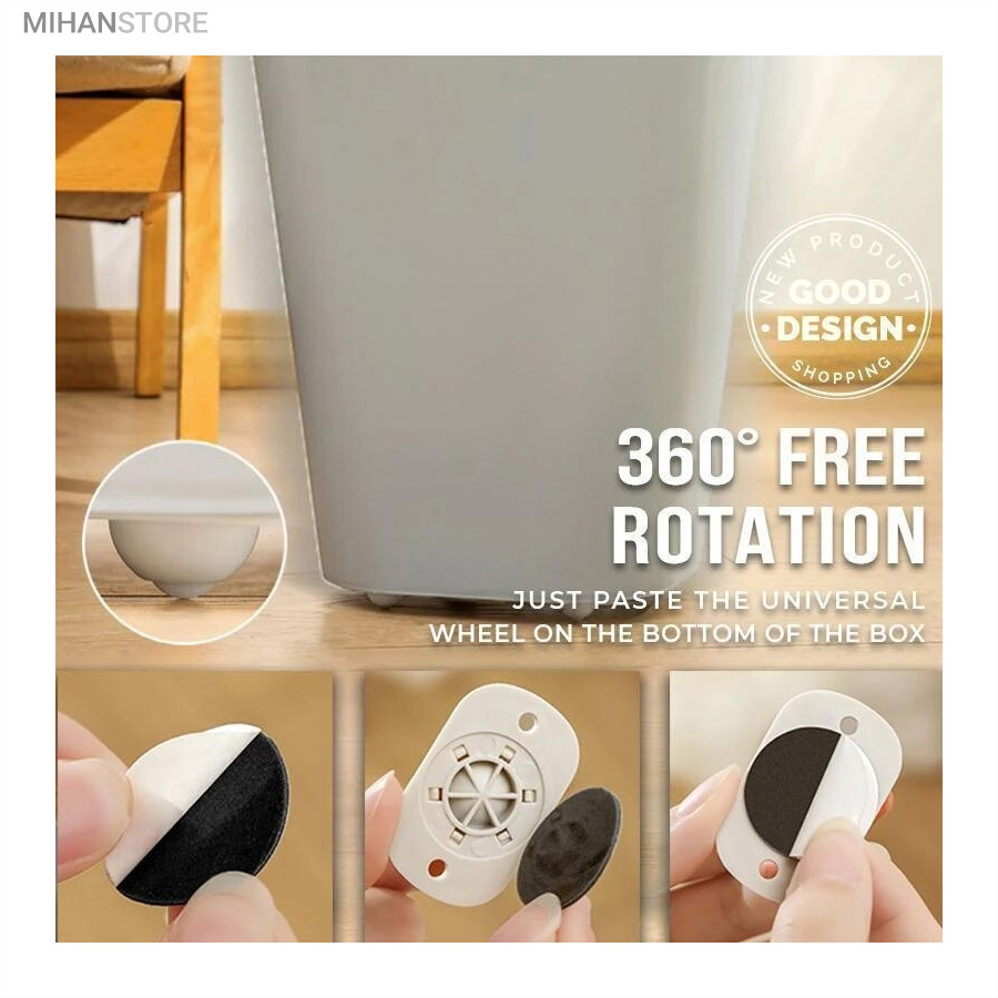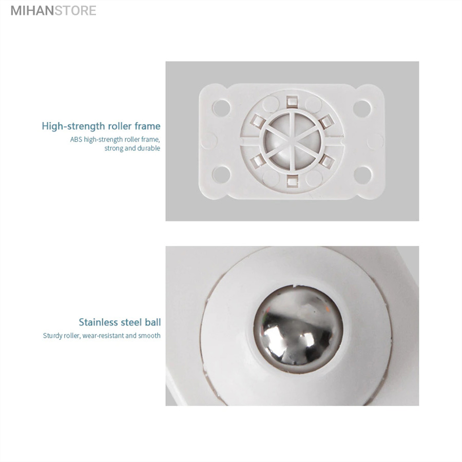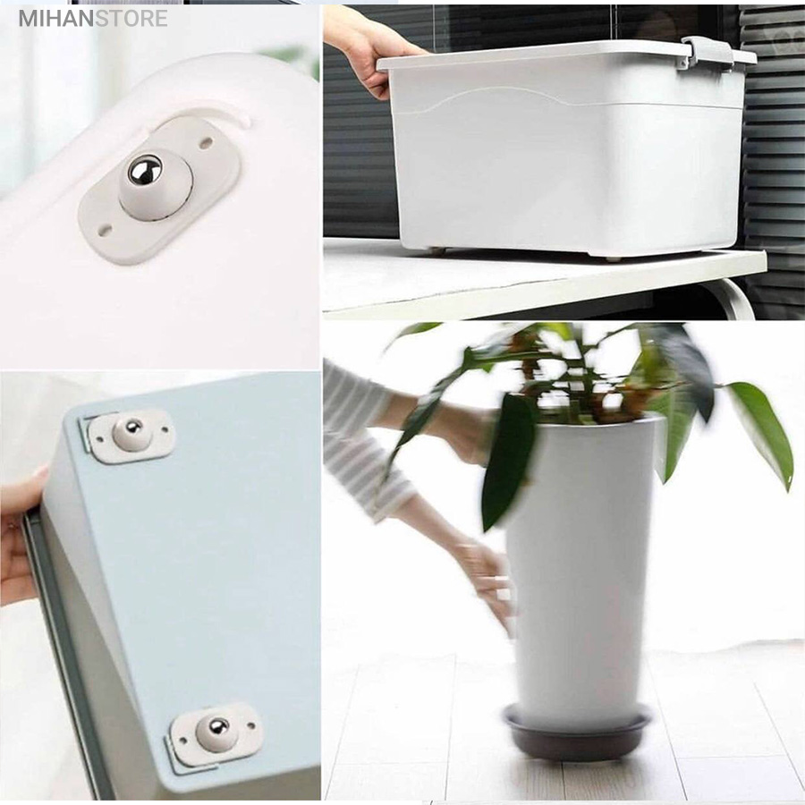 یک محصول خلاقانه کاربردی دیگر برای زندگی راحت تر! این محصول وارداتی و بسیار با کیفیت می باشد و جنس بدنه پلاستیک و جنس چرخ فلزی ضد زنگ بوده که با چسب دوطرفه قابلیت محکم شدن در جای خود را دارد، همچنین جای دو سوراخ پیچ تعبیه شده که بتوانید با پیچ در جای خود محکم کنید. هر چرخ قابلیت تحمل 8 الی 10 کیلو وزن را دارد و با توجه به اینکه در هر بسته 4 چرخ وجود دارد مجموع بسته ارسالی قابلیت تحمل وزنی حدود 40 کیلوگرم را دارد و شما با اتصال کردن این چرخ ها به وسیله خود به راحتی هر چه تمام می توانید آنها را جابه جا کنید.
