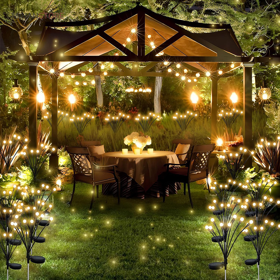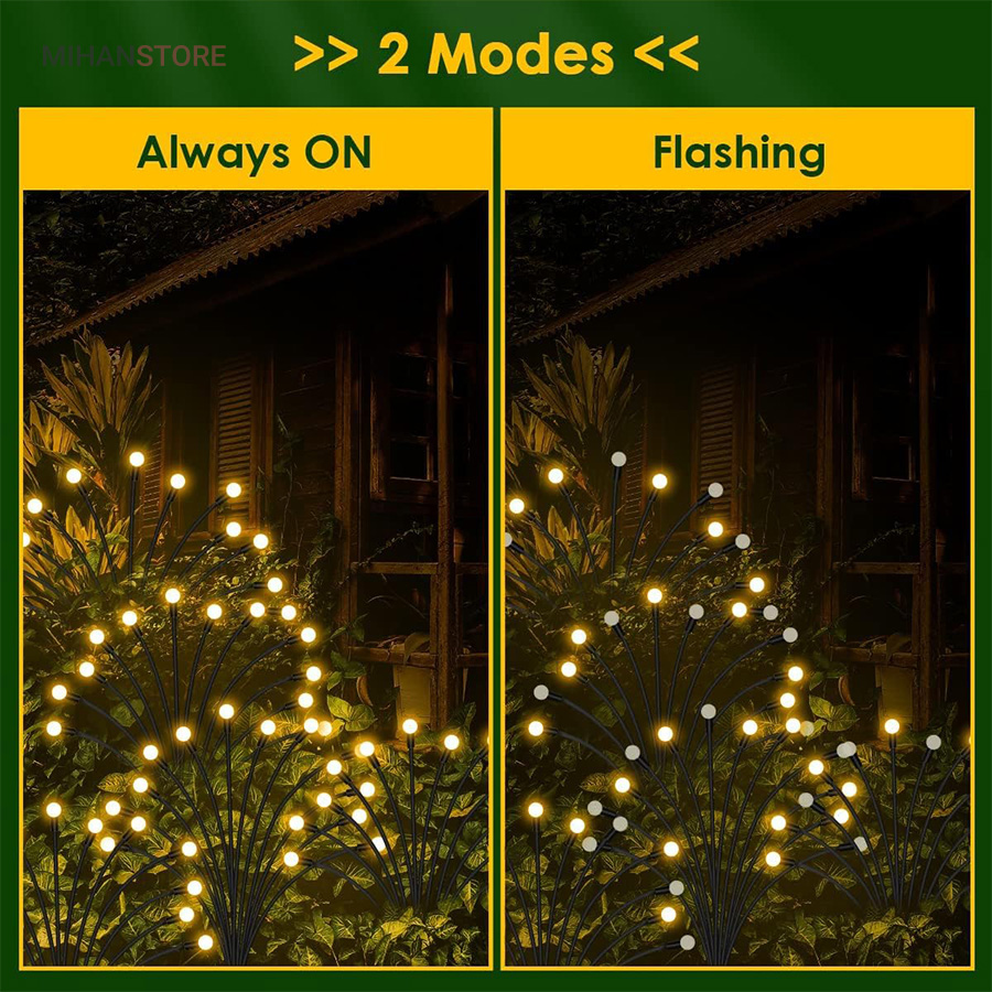 چراغ خورشیدی باغچه مدل گل شب تاب با طراحی جدید محصولی جذاب و کاربردی و ضد آب است.این چراغ با دارا بودن 8 لامپ LED از جنس ABS و بهره گیری از پنل خورشیدی خود ، انرژی رایگان خورشیدی را در طول روز در باتری داخلی خود ذخیره کرده و پس از غروب آفتاب با فرمان سنسور فتوسل موجود در پنل خورشیدی فعال میشود. محصول را میتوانید در هرجایی با نور مستقیم خورشید مثل حیاط ، باغ ، ویلا و بالکن نصب یا قرار داد و در طول شب از نور آن بهره برد. پشت پنل دکمه ON/OFF قرار دارد که با قرار دادن در حالت ON روشن و OFF خاموش میشود. شاخه های چراغ باغی شب تاب به هنگام وزش باد در تاریکی شب تکان میخورند، و با نور درخشان و زیبا، خانه و باغ شما را هر شب ستاره دار میکند و جلوه ای خاص به فضای باغ و ویلای شما میبخشد.