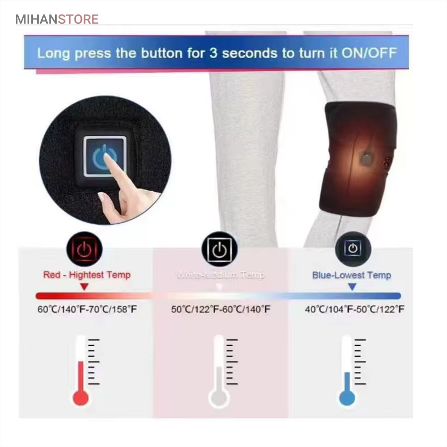درد های عضلانی طاقت فرسا و بسیار سخت هستند برای این منظور بعضی از افراد از مسکن هایی استفاده می کنند که عوارض های دیگری دارند و باعث بروز مشکلات دیگری می شوند ؛ فشار بیش از حد به زانو بر اثر ورزش سنگین و کار زیاد و همچنین ایستادن های طولانی مدت منجر به دردی مزمن و ازار دهنده می شود برای تسکین این درد ها و التهاب ها پیشنهاد می کنیم از زانو بند حرارتی وارمر استفاده کنید  زانو بند حرارتی وارمر از محبوب ترین ساپورت های پزشکی در سال های اخیر است و این زانو بند حرارتی با ایجاد گرمای قابل تنظیم و مطلوب به بهبود گرفتگی زانو و درد های مزمن زانو کمک بسزایی می کند ؛ زانو بند حرارتی می تواند درد های ناشی از آرتروز را کم کند و باعث می شود زانو ها فشار کم تری را متحمل شوند.جنس زانو بند حرارتی وارمر از نئوپرن است و با کنترل گرمای بیش از حد مناسب درد های عضلانی را به راحتی رفع می کند ؛ از مزیت های زانو بند حرارتی وارمر سایز ان بوده و این زانو بند فری سایز می باشد و برای همه ی افراد مناسب و کاربردی می باشد ؛ این محصول کاملا ضد حساسیت بوده و برای مصرف کننده هیچ عارضه و ضرری نمی رساند.نحوه ی استفاده از زانو بند حرارتی وارمردر مرحله ی اول زانو بند حرارتی را به برق وصل کنید و سه رنگ روی دکمه روشن و خاموش می شود که نشان دهنده ی سلامت محصول است دکمه ی روی محصول را سه ثانیه نگه دارید تا دستگاه روشن شود . می توانید درجه حرارت زانو بند حرارتی وارمر را در سه حالت مختلف تنظیم کنید . در اخر با نگه داشتن دکمه به مدت زمان1.5 ثانیه دستگاه خاموش خواهد شد.